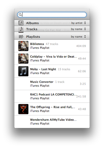 La caratteristica di Nasturtium Player che salta subito all'occhio è la velocità di ricerca. Cliccando sul simbolo "+" in basso a destra, comparirà una finestra. Da lì puoi trovare canzoni, artisti e album nella tua libreria iTunes e anche i video di YouTube.